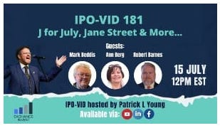 Fresh from our successful experiment last month, IPO-VID 181 features another fascinating panel to discuss market structure news, views and matters of the moment. Joining me will be BIDS co-founder Mark Beddis, former CBOT board member Ann Berg & Co-CEO of BPX Digital Securities Exchange Robert Barnes.